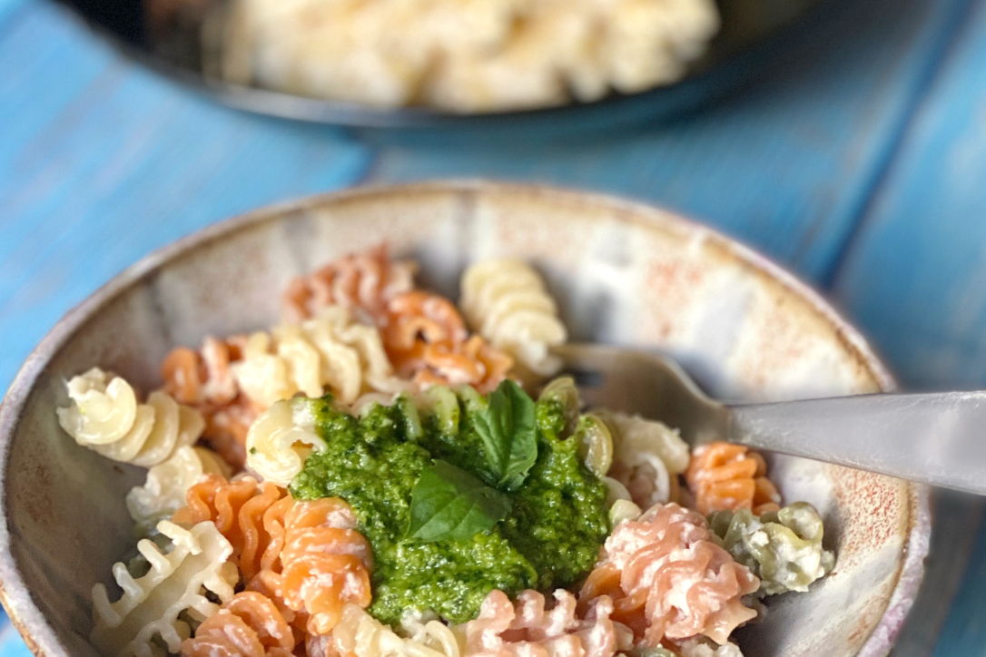 This creamy mac & cheese with kale pesto is a comforting, veggie-packed twist on a classic favorite, combining a smooth, cheesy sauce with a bright, flavorful pesto. It’s the kind of dish that feels familiar but introduces new ingredients in a fun, approachable way for kids.